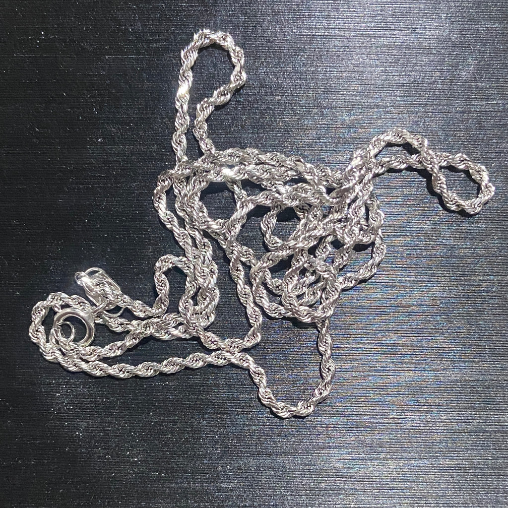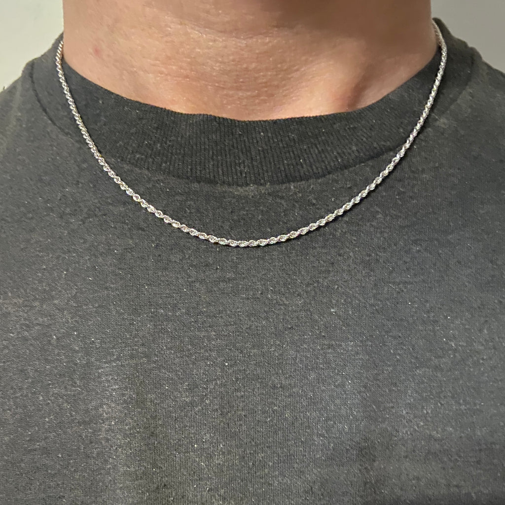 Massive echte 14 Karat Weißgold-Kordelkette, 18 Zoll, 2 mm