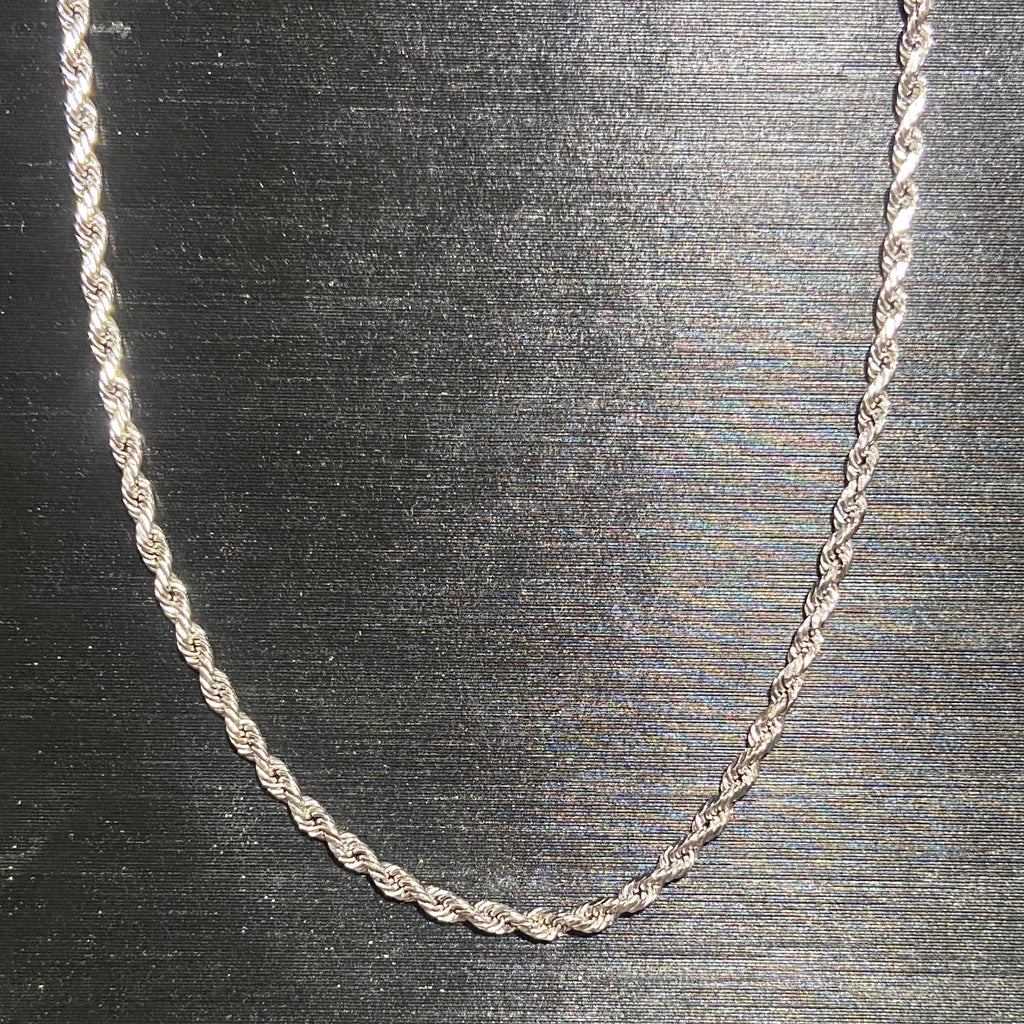 Massive 14 Karat Weißgold-Kordelkette, 2 mm, 18 Zoll, gestempelt 14 Karat