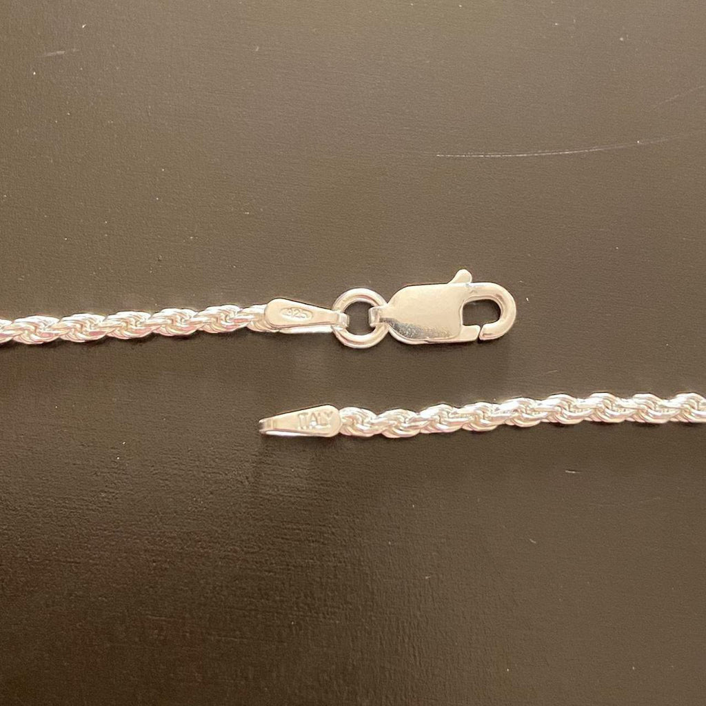 Massive Silberkette, 925er Silber, Seilkette, 2 mm, 55,9 cm, 925er Italien-Stempel. Hergestellt in Italien