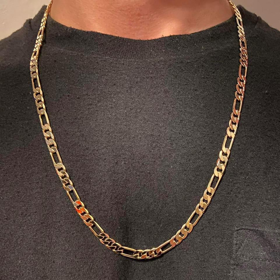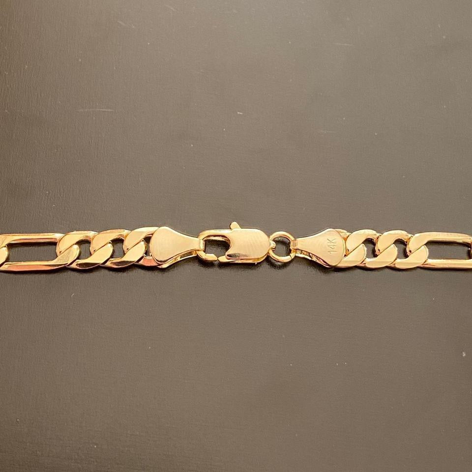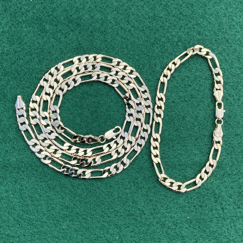 14k Gold Figaro Link Chain 24in 6mm and 8in 6mm Cuban Bracelet Set Stamped 14k.