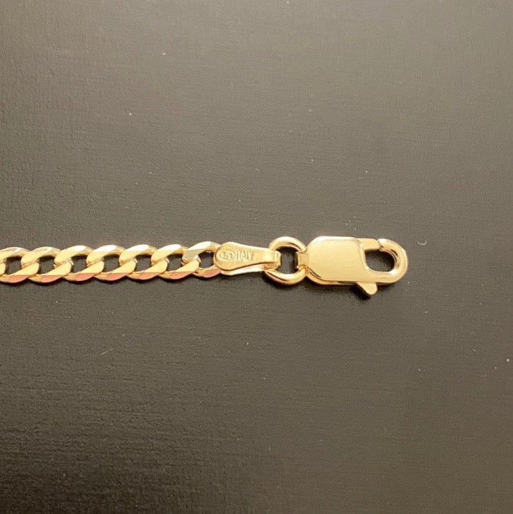 14k Gold Vermeil Cuban Chain 20in 3mm .925 Italy Stamped. Made in Italy