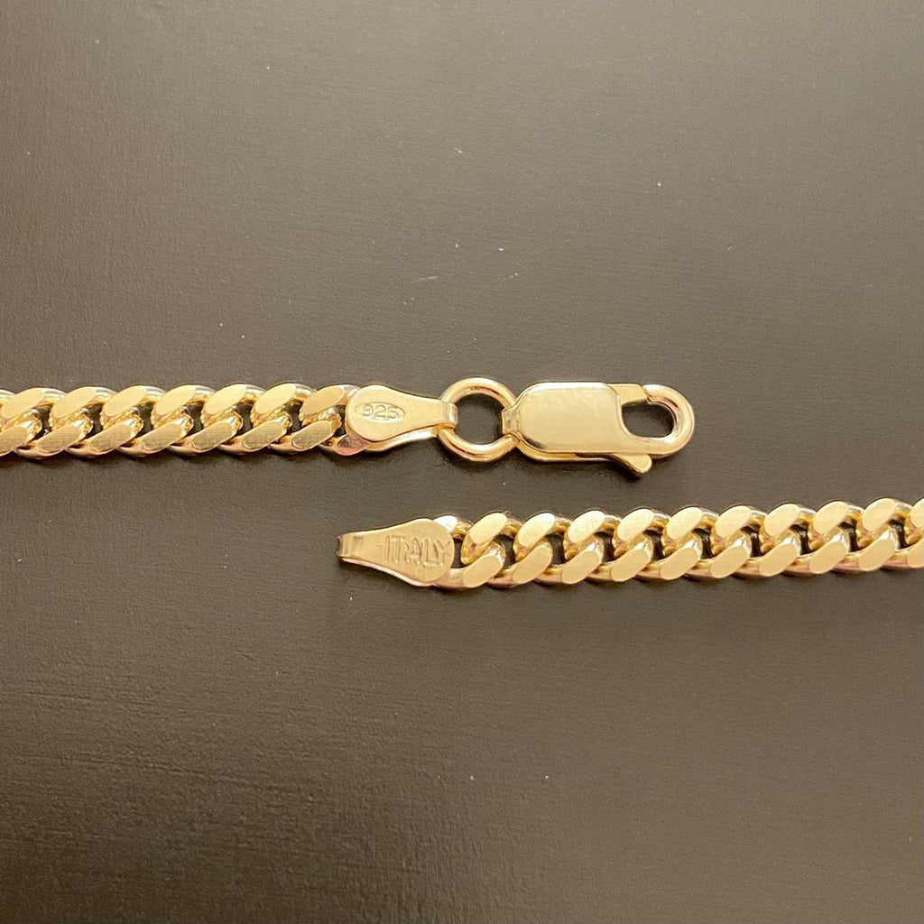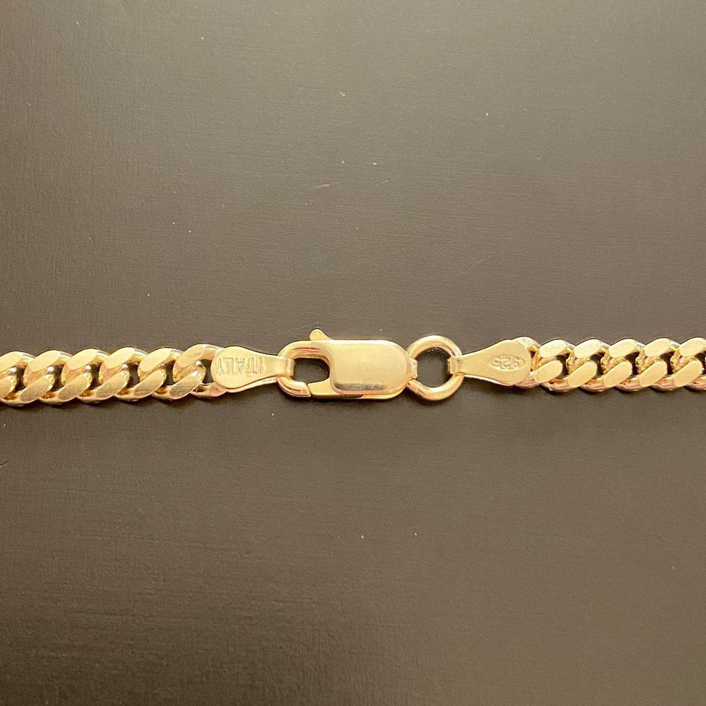 14k Gold Vermeil Miami Cuban Link Chain 18in 4mm .925 Italy Stamped. Made in Italy
