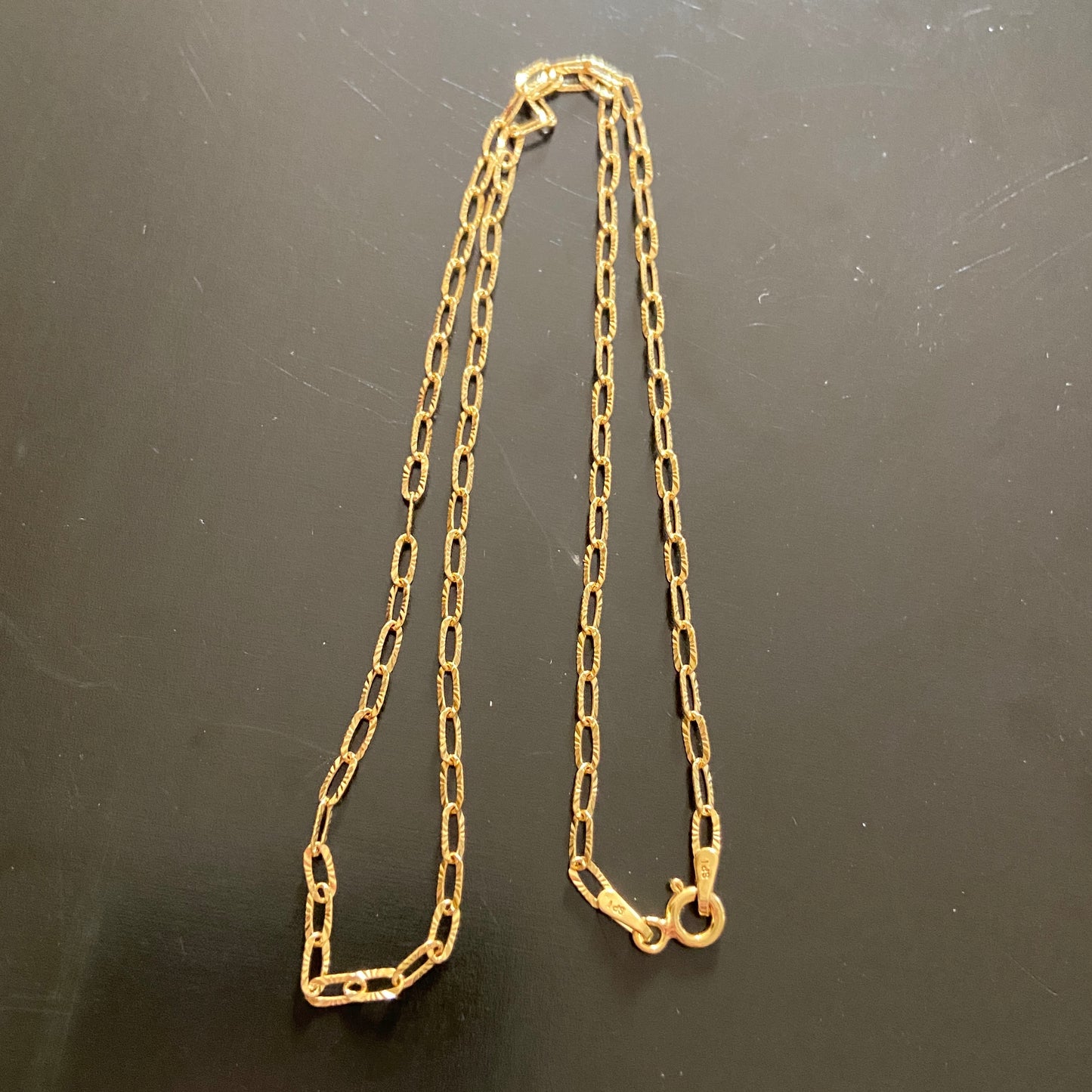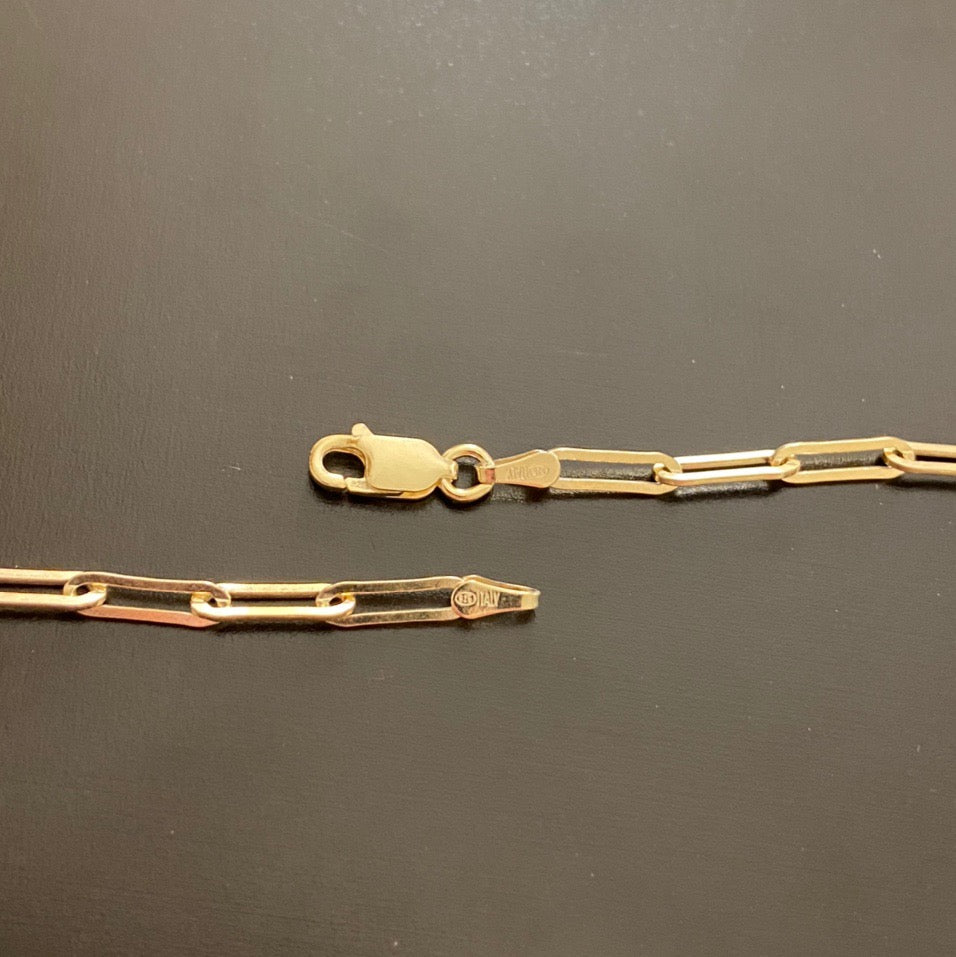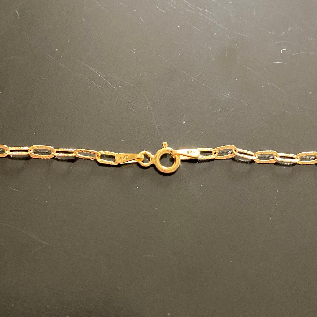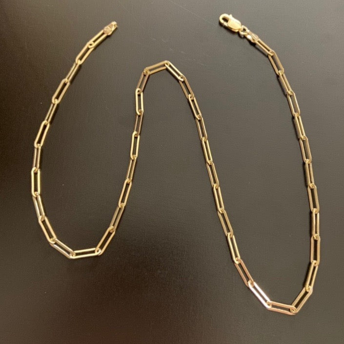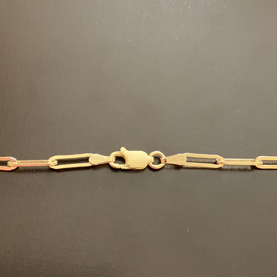 14k Gold Vermeil Paper Clip Chain 2.5mm 16in .925 Italy Stamped. Made in Italy