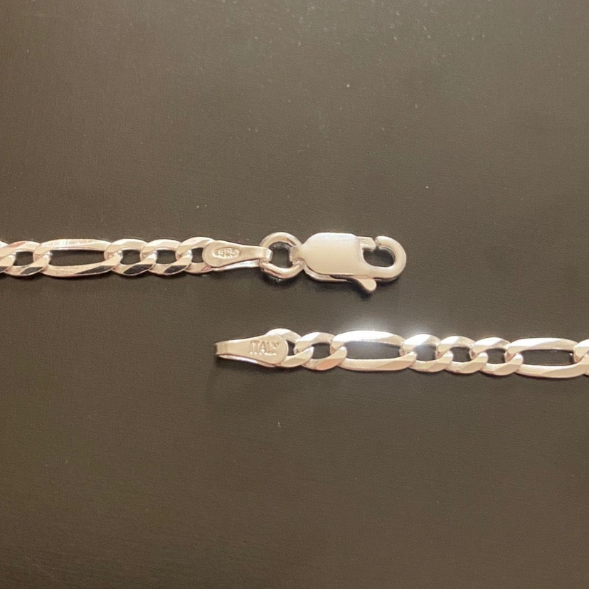 Solid Silver Figaro Chain 3mm 20in .925 Italy Stamped. Made in Italy