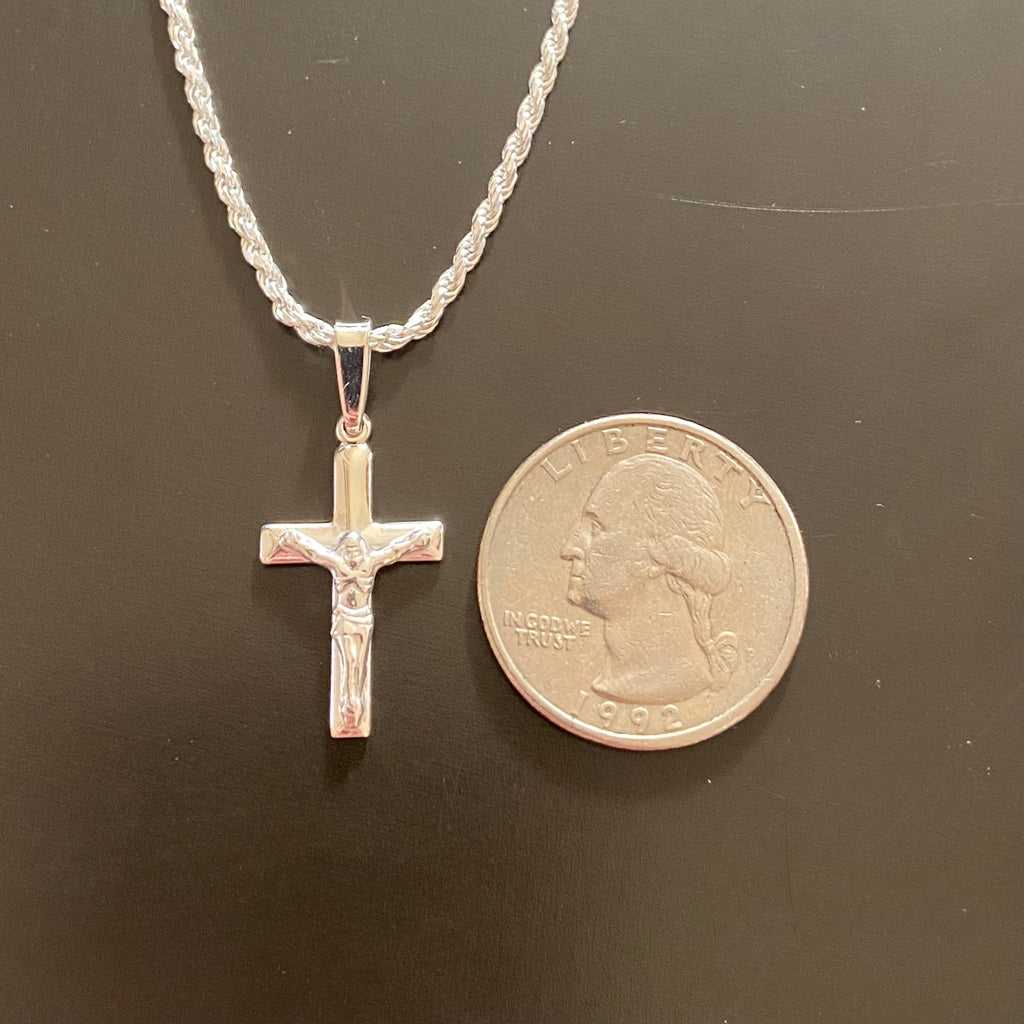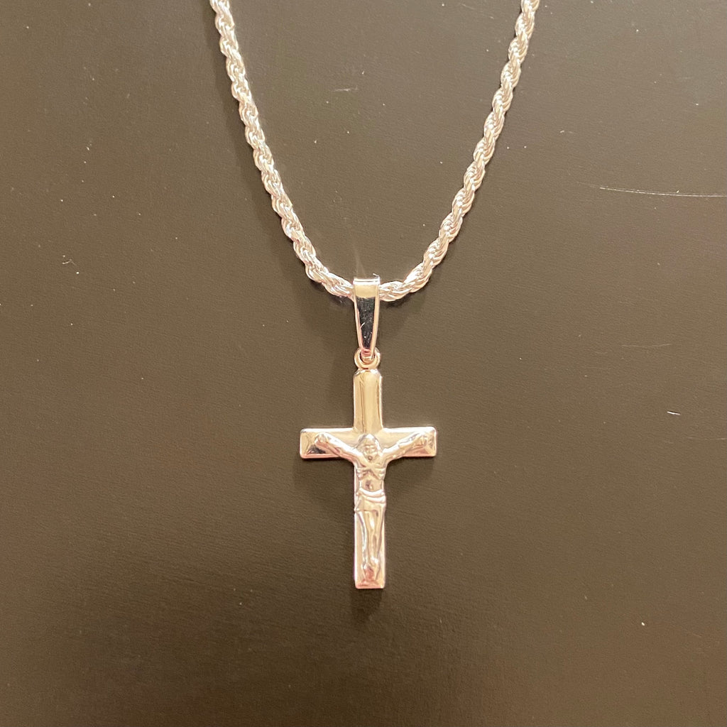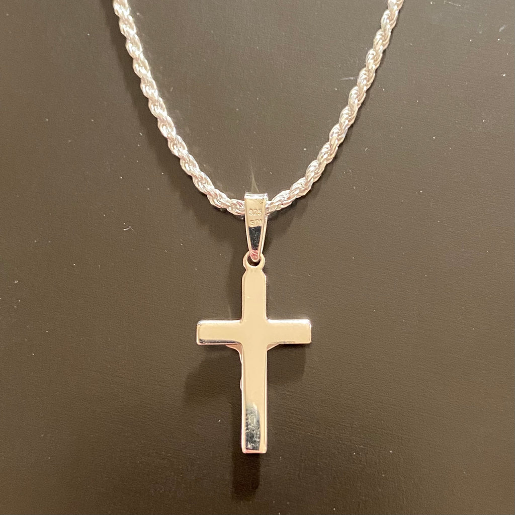 Solid Silver Cross and Rope Chain 2mm 18in set .925 Italy Stamped. Made in Italy